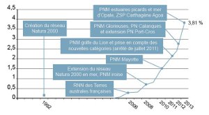 Le périmètre pris en considération en 2009 pour le coeur marin du futur PN est déjà le fruit d’un long processus de maturation, qui va se poursuivre. A l’origine du projet, le périmètre envisagé était quasi exclusivement terrestre. Sous l’impulsion de l’Etat, c’est au titre des considérations écologiques et patrimoniales qu’il a d’abord paru pertinent d’élargir le périmètre à la partie marine. La prise en compte des fonctionnalités écologiques, des statuts de protection ou de gestion existants (présence du Parc marin de la Côte Bleue, Natura 2000 en mer, plan de gestion de l’Ile Verte et du Mugel, etc.) et des usages, aboutit à un premier périmètre très large, allant de la baie de La Ciotat à l’Est à la Côte Bleue à l’Ouest, non seulement en mer mais aussi à terre.